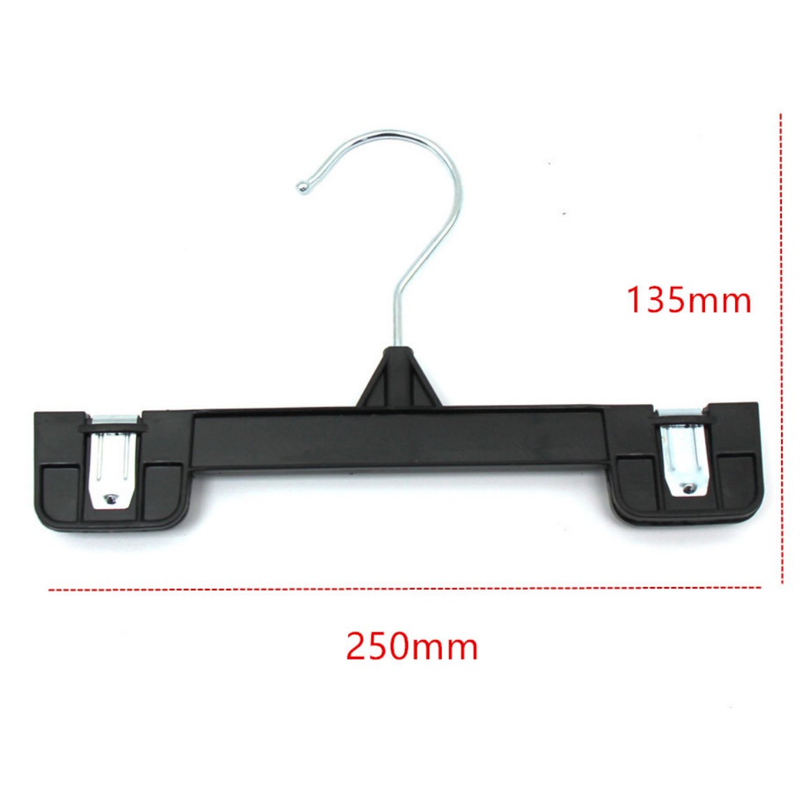 DIMENSION - The Plastic Hanger clips are measured  in 9.85''/12.6'' Length and 5.5'' height.Hook can adjust your required size.
