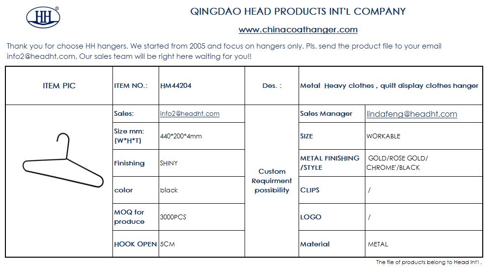 Metal Hangers have great load bearing aiblity. So normally used for mens' clothes and Heavy cltohes. Also can do custom order on logo and hook part as below: