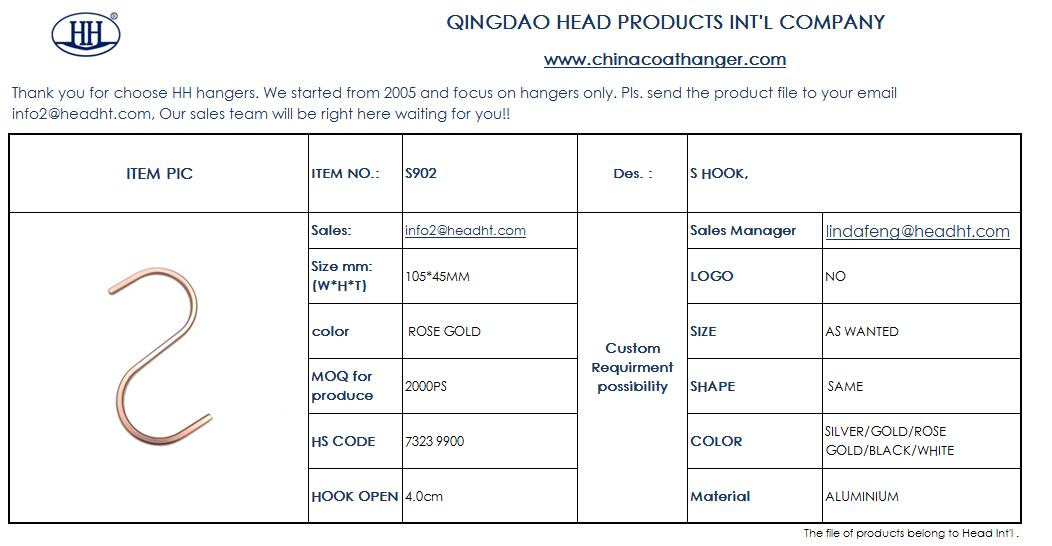Metal Hangers have great load bearing aiblity. So normally used for mens' clothes and Heavy cltohes. Also can do custom order on logo and hook part as below: