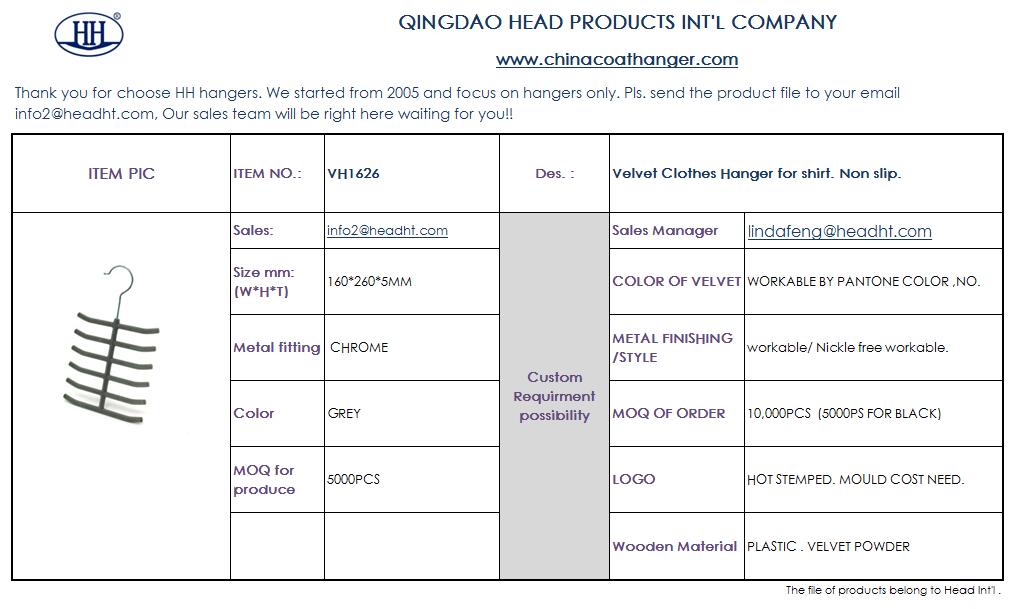 Velvet Hanger normally use plastic hanger as bottom ground basic. Because it need very smooth surface. So we have one way to add logo on the hanger as below. If order quantity big. can add logo on hook also, Mould cost needed.