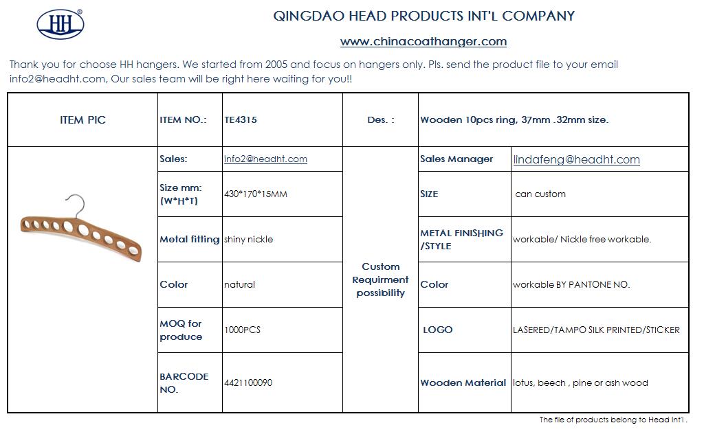 We learn knowledge of hangers meterial , fuction, production after we started the busines. Everyone here in Head Products Int'l works for helping our clients easily find the right personality clothes hangers , We are HH hangers custom service team.