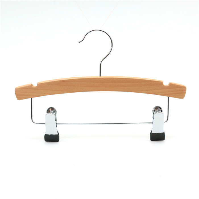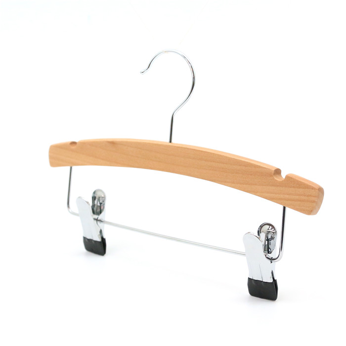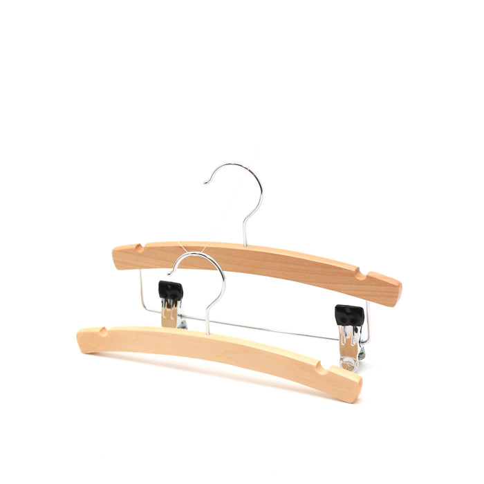 Wooden Clips Hanger for Trousers or Skirt set for suit . Metal B clips , Chrome plated. Hanger is Natural Half Matte  .