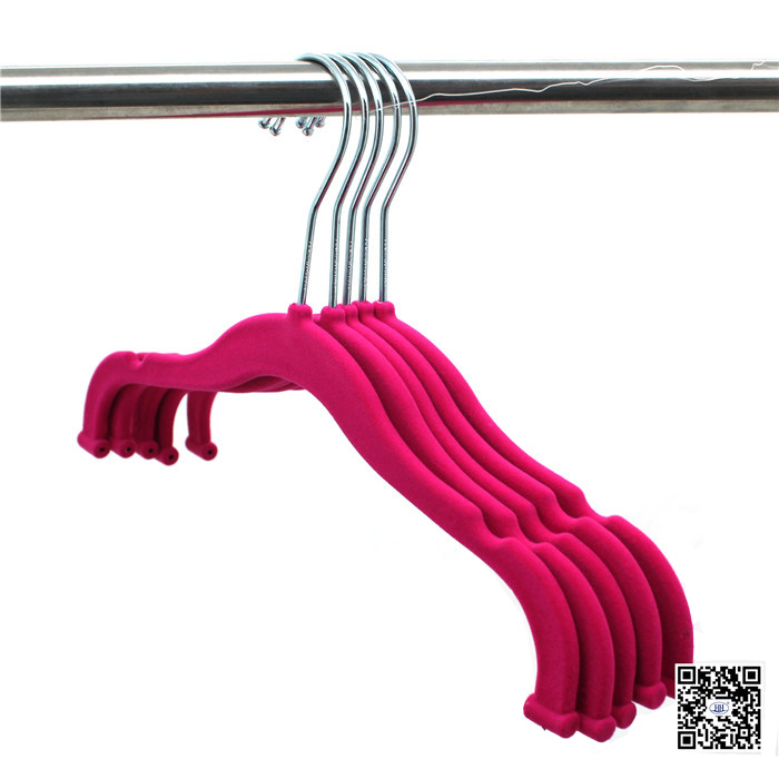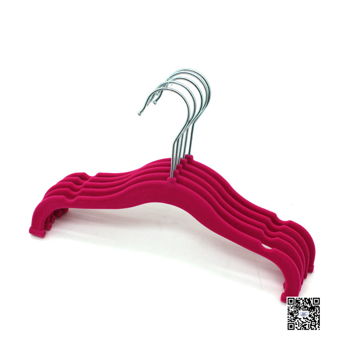 Velvet Hanger normally use plastic hanger as bottom ground basic. Because it need very smooth surface. So we have one way to add logo on the hanger as below. If order quantity big. can add logo on hook also, Mould cost needed.
