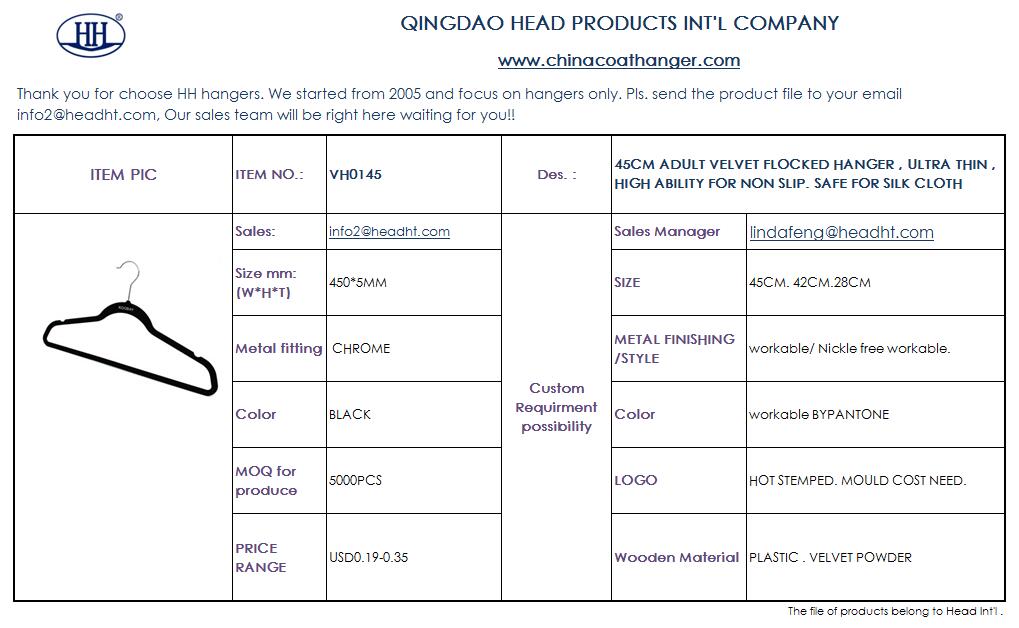 We learn knowledge of hangers meterial , fuction, production after we started the busines. Everyone here in Head Products Int'l works for helping our clients easily find the right personality clothes hangers , We are HH hangers custom service team.