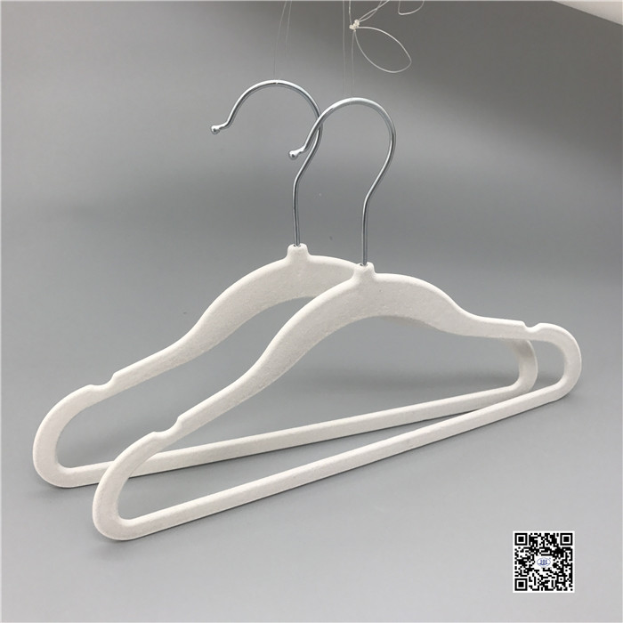 Velvet Hanger normally use plastic hanger as bottom ground basic. Because it need very smooth surface. So we have one way to add logo on the hanger as below. If order quantity big. can add logo on hook also, Mould cost needed.
