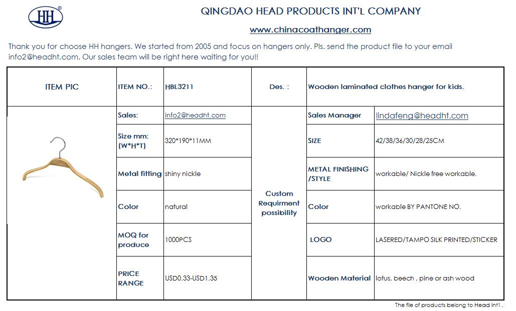 HBL3211 Children Clothes Hanger Wooden