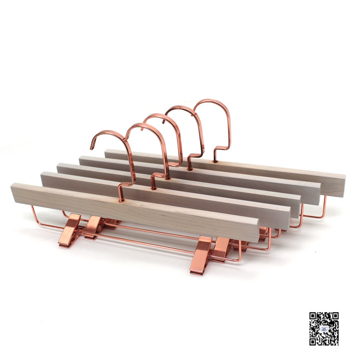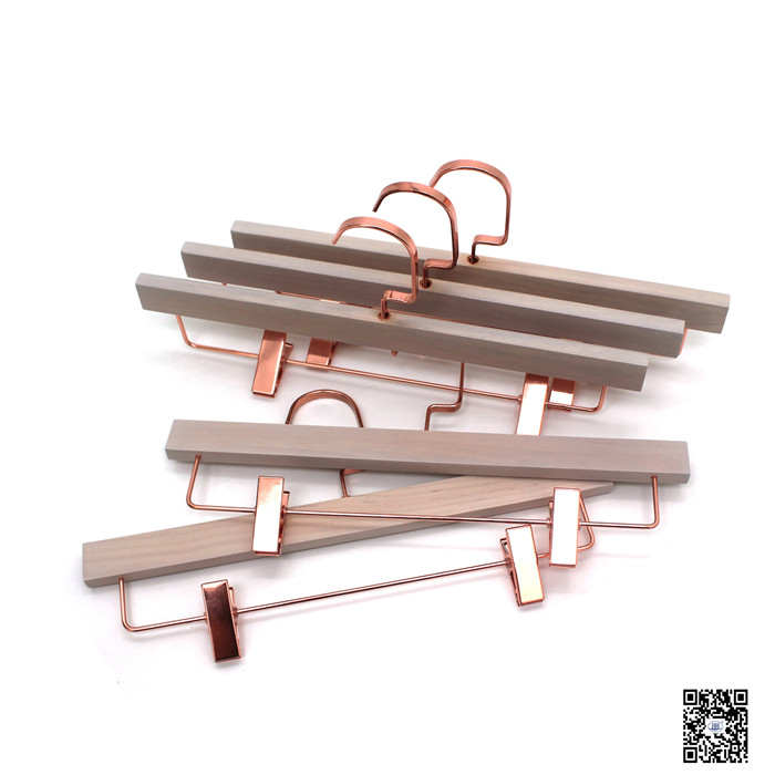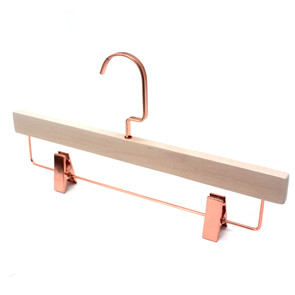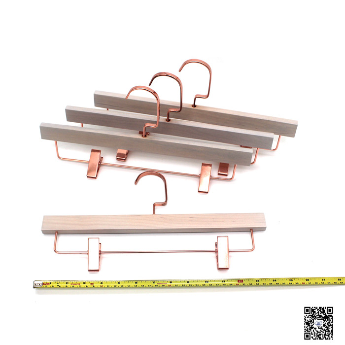 Straight Wooden Line Bottom Hangers for trousers or skirt. with flat clips 50*17 mm middle size. Black Finishing . Strong clamp power .White matte paint finishing
