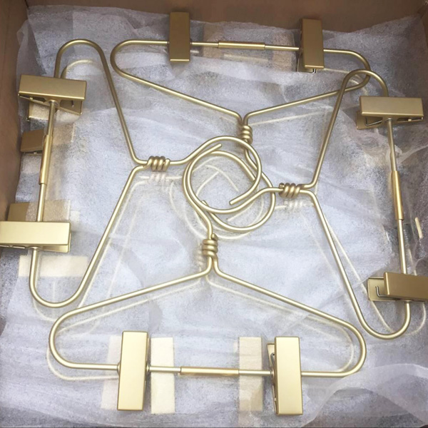 When got the hanger style , the Client can choose the finishing of the metal to fit the shop character or the Clothes personality. Also can colored by Pantone No.