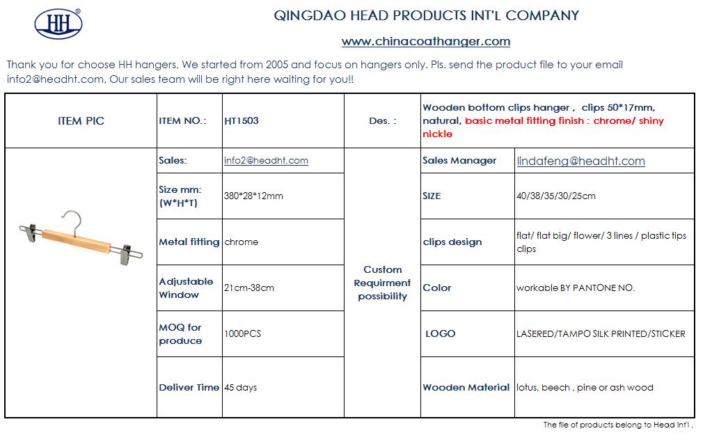 We learn knowledge of hangers meterial , fuction, production after we started the busines. Everyone here in Head Products Int'l works for helping our clients easily find the right personality clothes hangers , We are HH hangers custom service team.