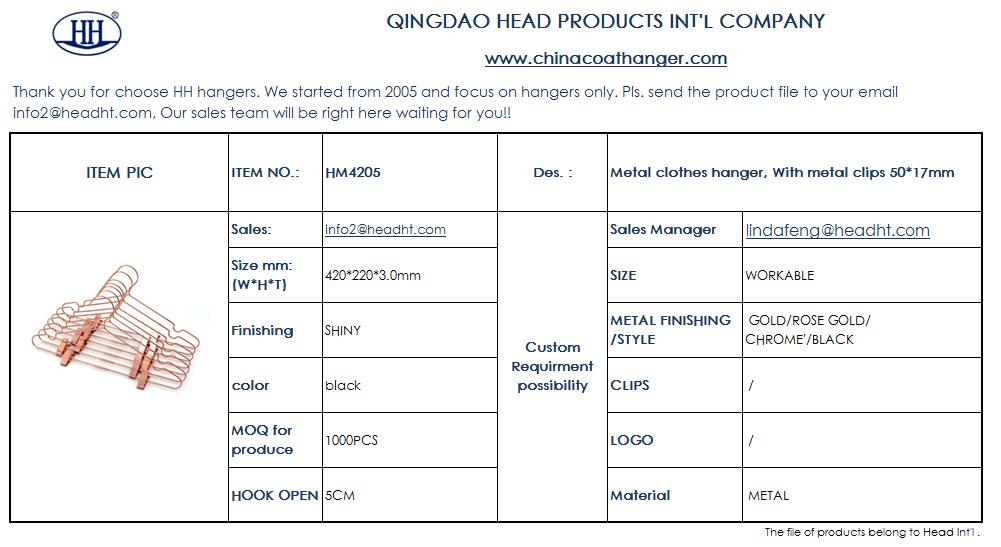 Metal Hangers have great load bearing aiblity. So normally used for mens' clothes and Heavy cltohes. Also can do custom order on logo and hook part as below: