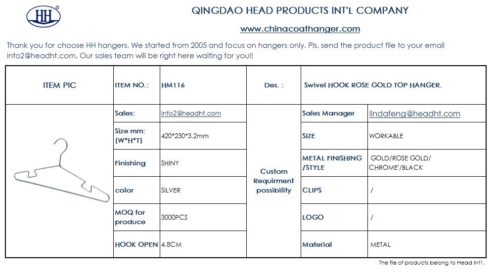 Metal Hangers have great load bearing aiblity. So normally used for mens' clothes and Heavy cltohes. Also can do custom order on logo and hook part as below: