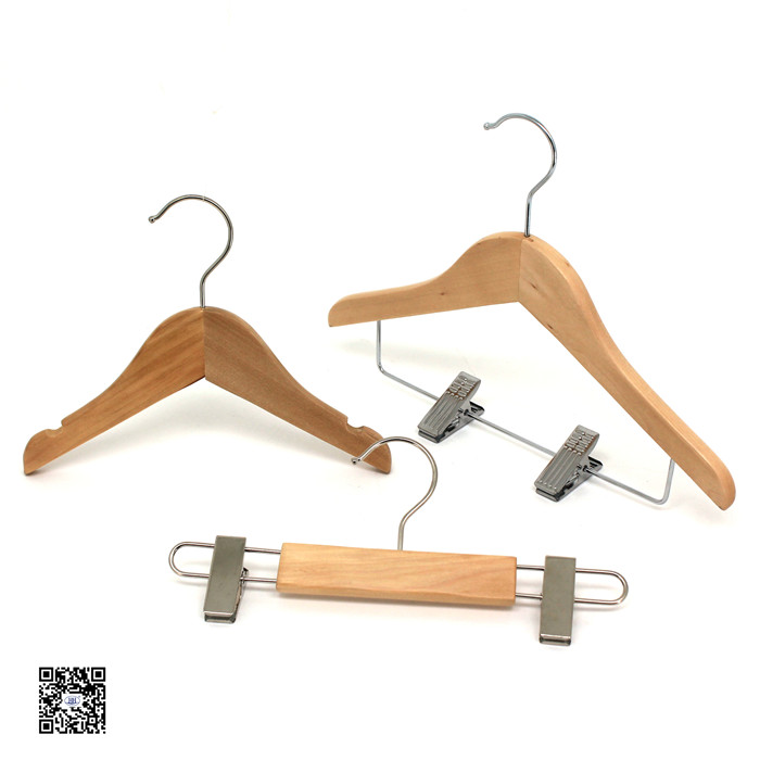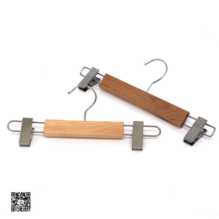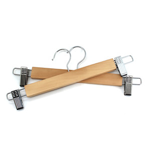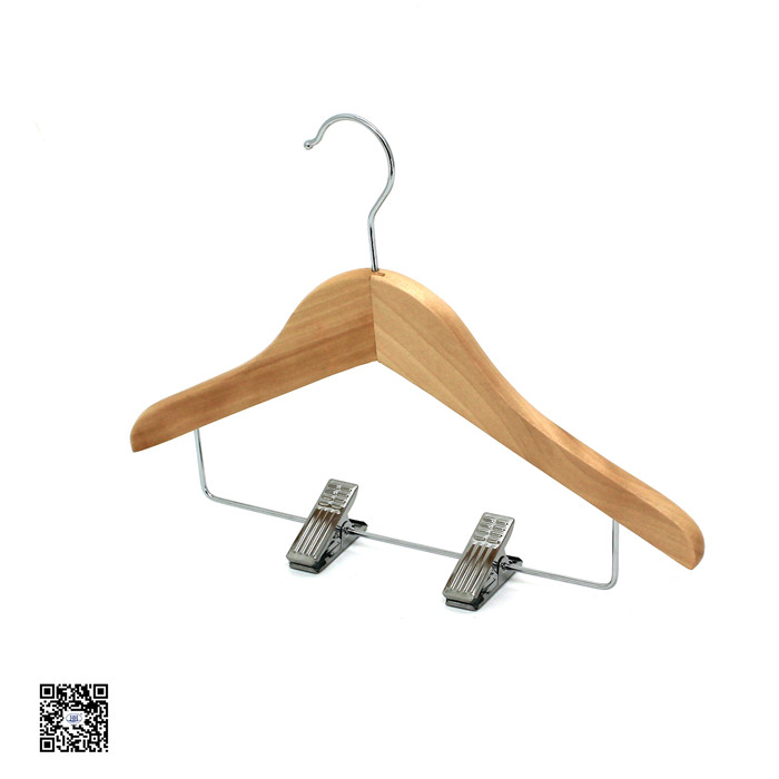 Wooden Clips Hanger for Trousers or Skirt set for suit . Metal B clips , Chrome plated. Hanger is Natural Half Matte .Click here for details