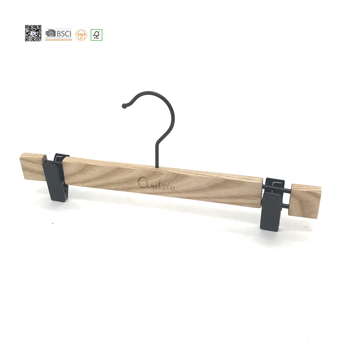 Solid Wooden Trousers Hanger, Ash Wood with stopper . 50x17mm clips , large power. wooden coat hangers bulk