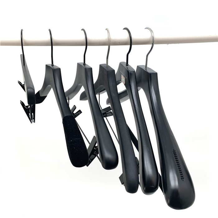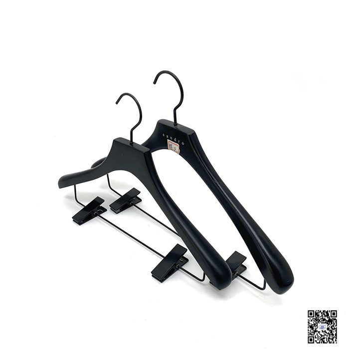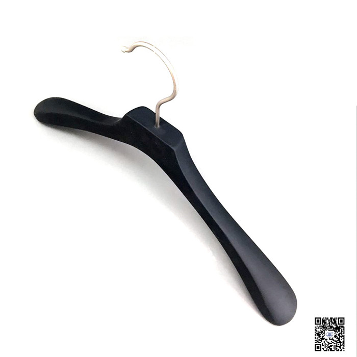 Chinese Local wooden suit hanger , Black color painted. Half Matte Finishing. Swivel Hook ball end. Very Large shoulder for Jacket/ suit display.