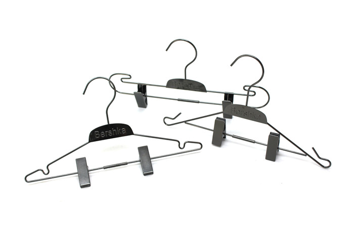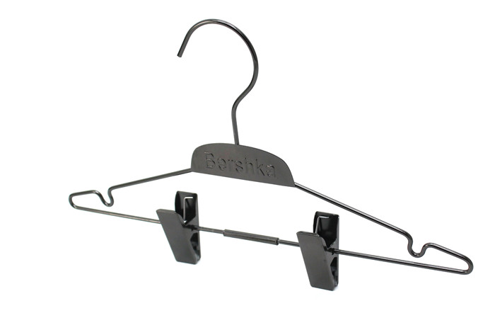 These Metal Hangers followed the design of the branded customer's Drawing. We use shiny free nickle plated to reach European Standard , Moulded Brand , Metal clips have big clamp power for clothes. Used for underwear , lingerie, shorts clothes display.