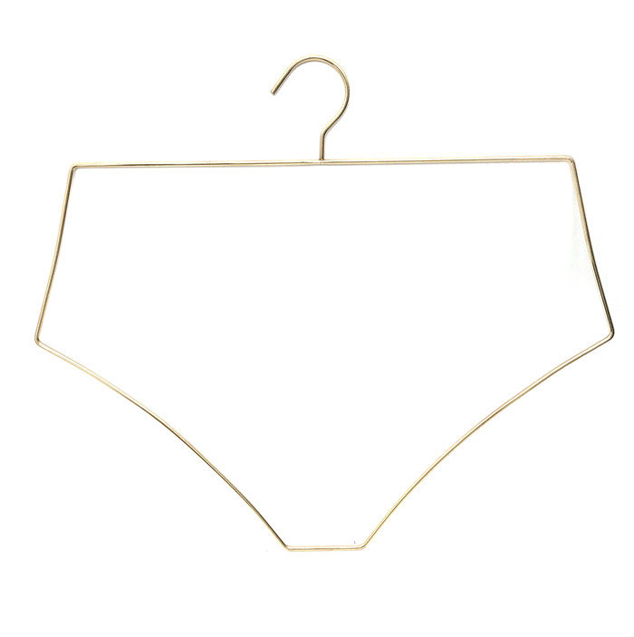 These Metal Hangers followed the design of the branded customer's Drawing. We use shiny gold finishing,Large Mould , Used for underwear , lingerie, shorts clothes display. Only for custom ability show. not for sell.