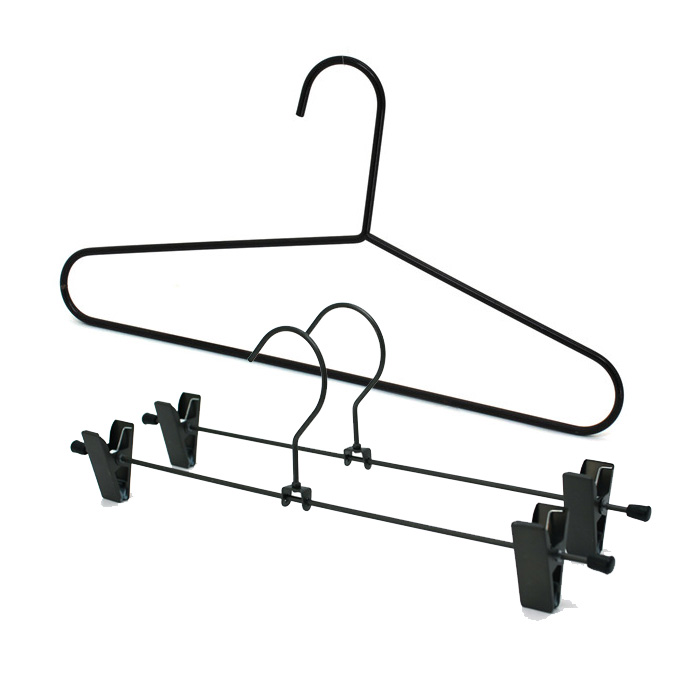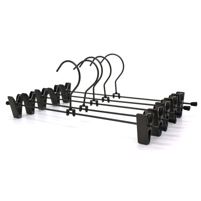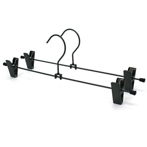 Adjustable Clips Bottom Clothes Hanger for Pants or Skirts Display. with flat clips 50*17mm middle, size. Swivel Hook. Satin Black finishing