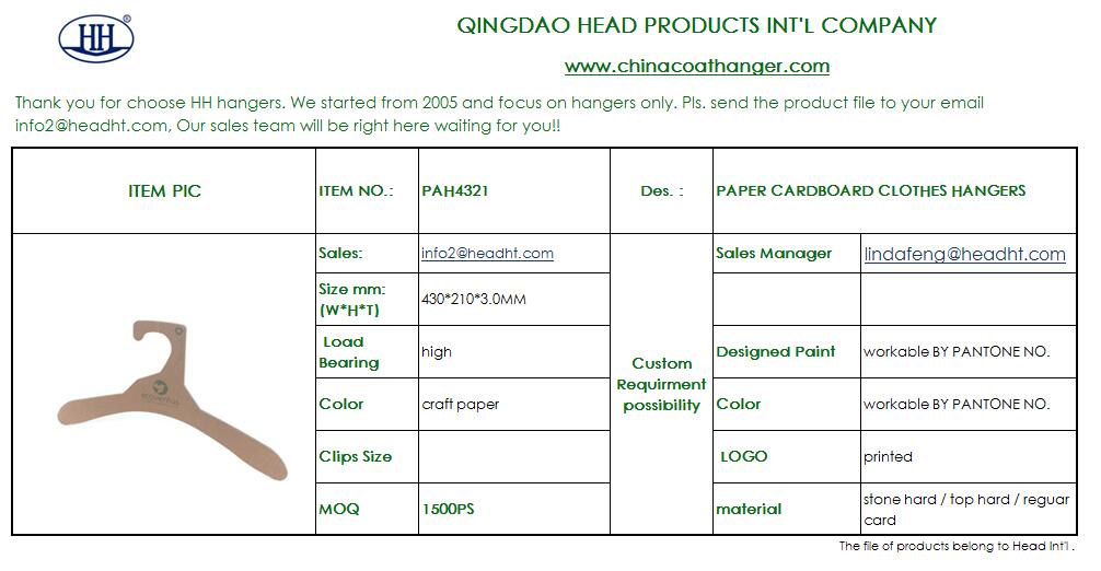 • ITEM NO.:  PAH3919    CARDBOARD RECYCLABLE PAPER CLOTHES HANGER