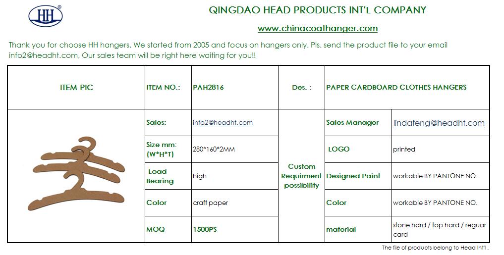 PAB2813 PAPER CARDBOARD CLOTHES HANGER (PICTURE IS ONLY FOR SHOW)