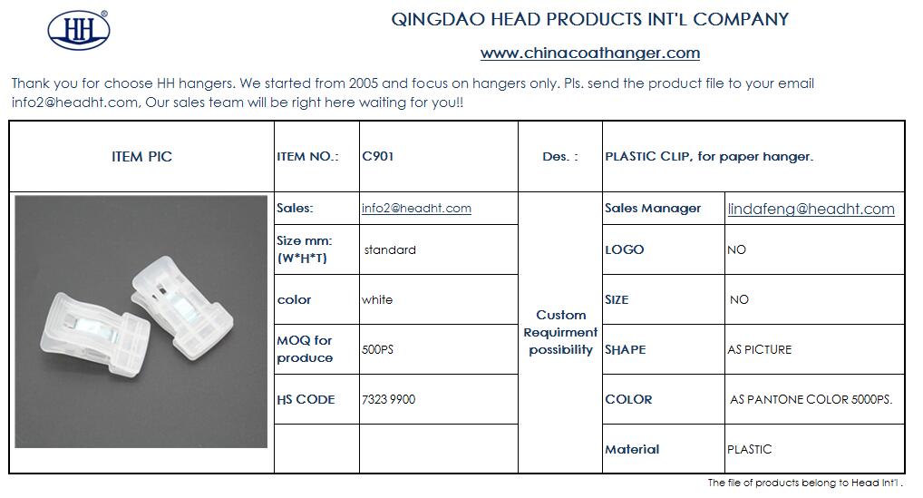 C901 CLIPS FOR PAPER CARDBOARD Adult CLOTHES HANGER