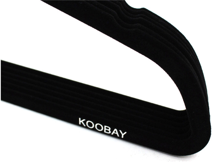 Velvet Hanger normally use plastic hanger as bottom ground basic. Because it need very smooth surface. So we have one way to add logo on the hanger as below. If order quantity big. can add logo on hook also, Mould cost needed.