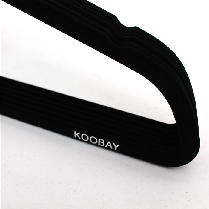 Velvet Hanger normally use plastic hanger as bottom ground basic. Because it need very smooth surface. So we have one way to add logo on the hanger as below. If order quantity big. can add logo on hook also, Mould cost needed.