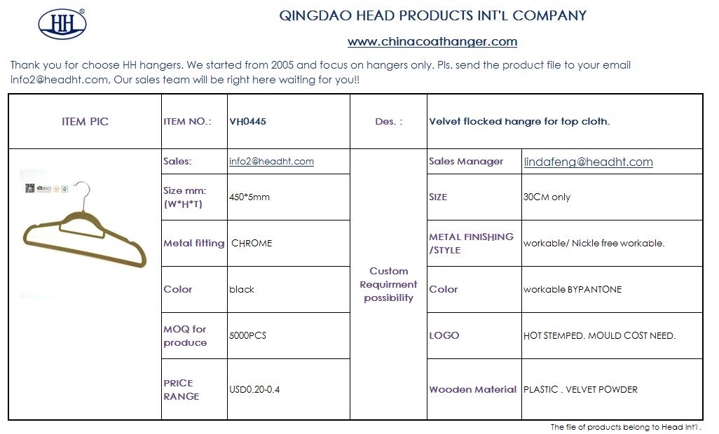 We learn knowledge of hangers meterial , fuction, production after we started the busines. Everyone here in Head Products Int'l works for helping our clients easily find the right personality clothes hangers , We are HH hangers custom service team.