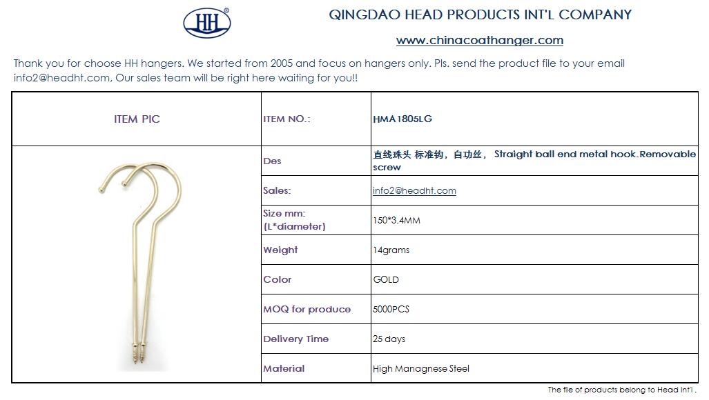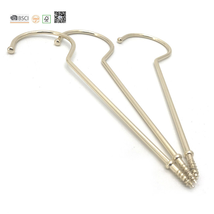 Metal Fittings for Clothes Hangers include metal hooks, metal clips , Metal Nails And Metal Lines. It's Finishing includes chrome, matte chrome. nickle , Matte nickle. Black Nickle, Matte black nickle. Gold, Rose Gold, Brass , Antique Brass. Colored ( white / black is ordinary color) . Metal Accessories normally be produced by specific size followed the hanger require. So Custom order normally focus on finishing of the metal , Accessories Styles . Seldom Clients want metal fitting by their drawing and size.