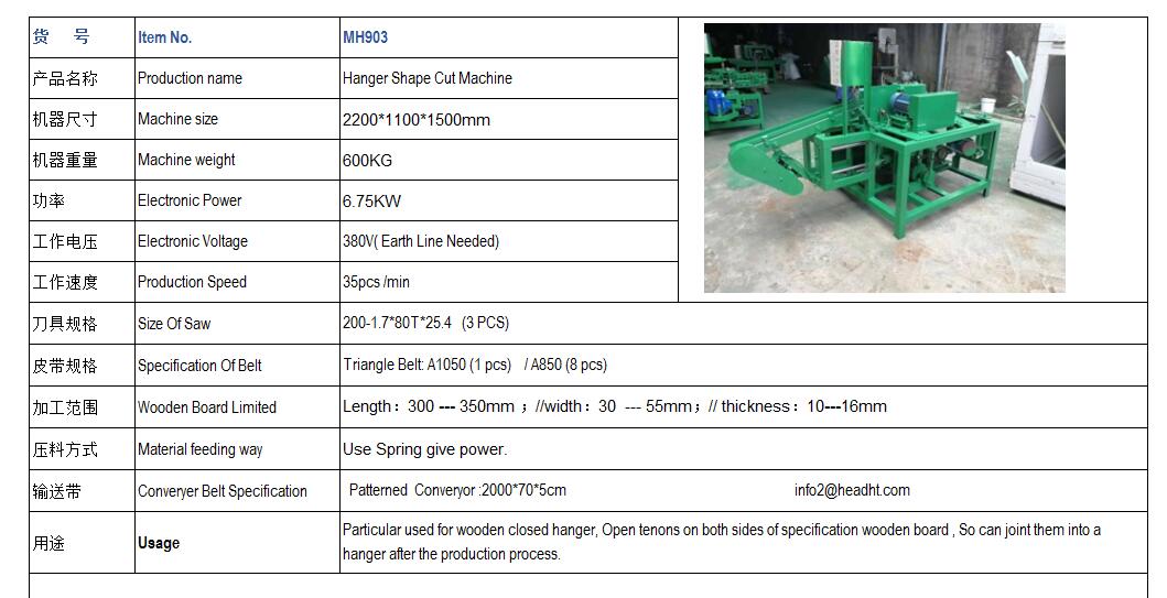 This machine MH903 is machine for wooden clothes hangers. all the information done by HEAD INT'L. should not OK to be used as commercial way without agree.