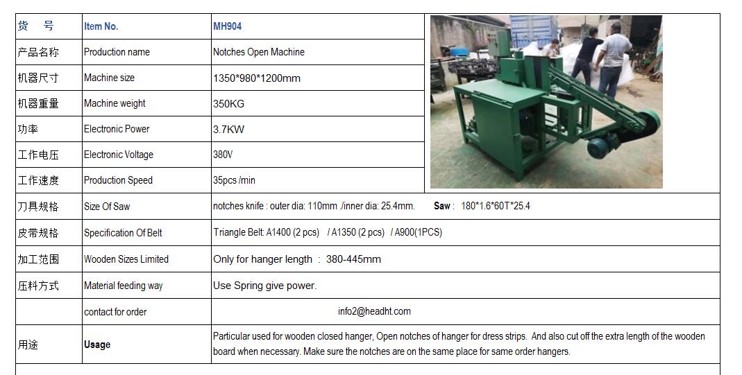 MH904 | NOTCHES CUT & LENGTH CONTROL | Clothes hangers have sizes. and Might need notches for strips of lady dress. This Machines used to shorten the wooden board to right size. and open notches on hangers shoulder. | ||