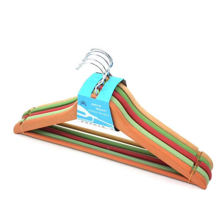HP0302C FLAT BODY WOODEN SHIRT HANGER WITH BAR, PAINTED BY PANTONE COLOR NO.