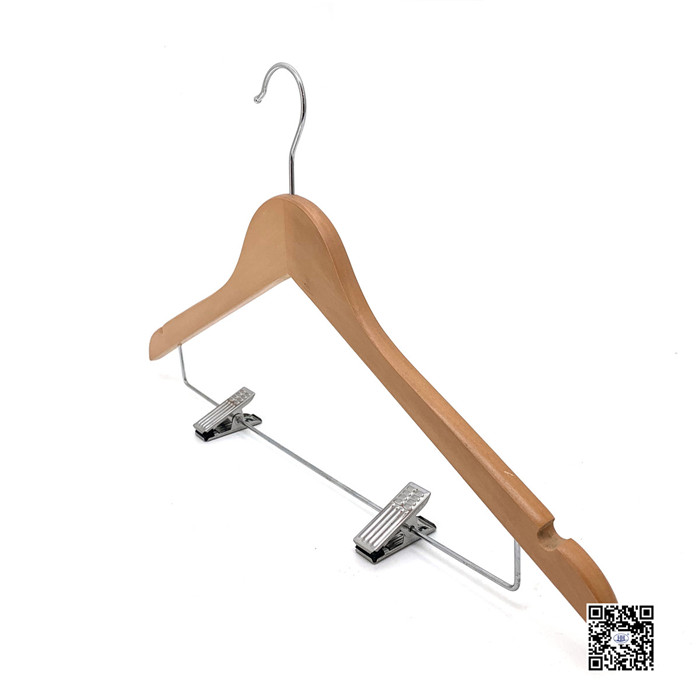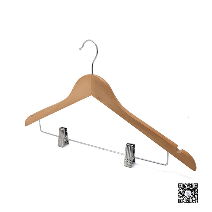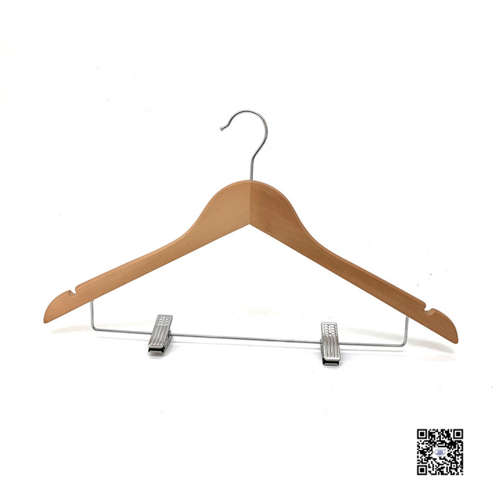 Item No.: HP0305NL Natural wooden top hanger with clips , Closet storage. showroom hangers
