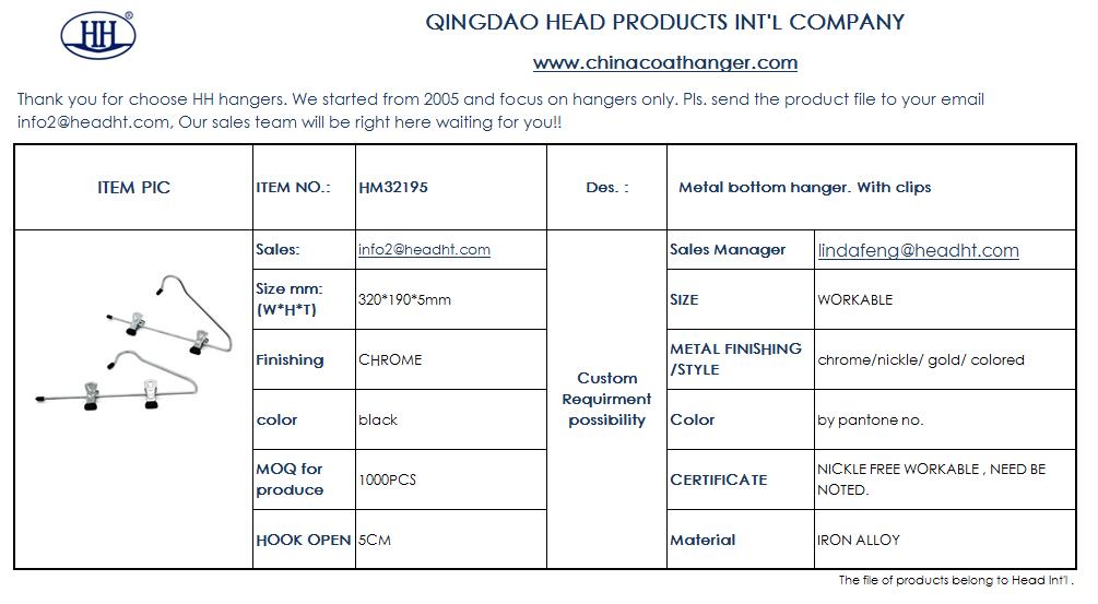 Metal Hangers have great load bearing aiblity. So normally used for mens' clothes and Heavy cltohes. Also can do custom order on logo and hook part as below: