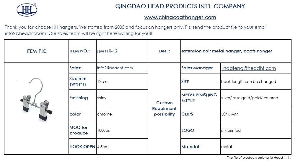 Metal Hangers have great load bearing aiblity. So normally used for mens' clothes and Heavy cltohes. Also can do custom order on logo and hook part as below: