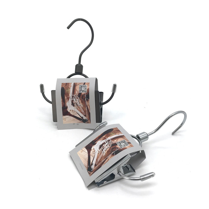 When got the hanger style , the Client can choose the finishing of the metal to fit the shop character or the Clothes personality. Also can colored by Pantone No.