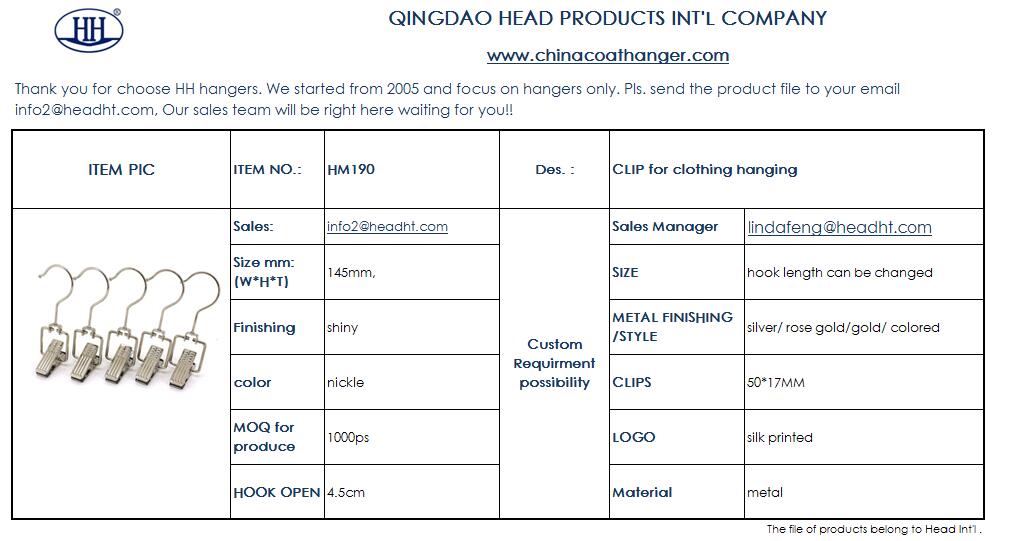 Metal Hangers have great load bearing aiblity. So normally used for mens' clothes and Heavy cltohes. Also can do custom order on logo and hook part as below: