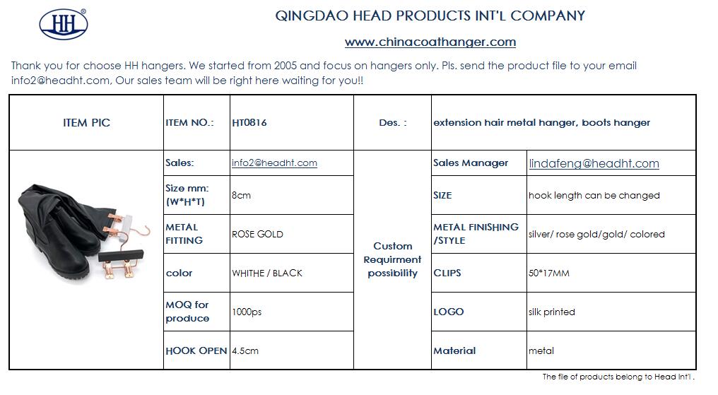 Metal Hangers have great load bearing aiblity. So normally used for mens' clothes and Heavy cltohes. Also can do custom order on logo and hook part as below: