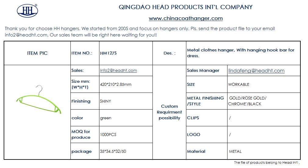 Metal Hangers have great load bearing aiblity. So normally used for mens' clothes and Heavy cltohes. Also can do custom order on logo and hook part as below: