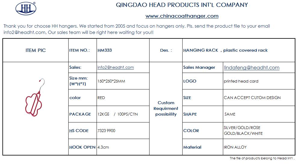 We learn knowledge of hangers meterial , fuction, production after we started the busines. Everyone here in Head Products Int'l works for helping our clients easily find the right personality clothes hangers , We are HH hangers custom service team.