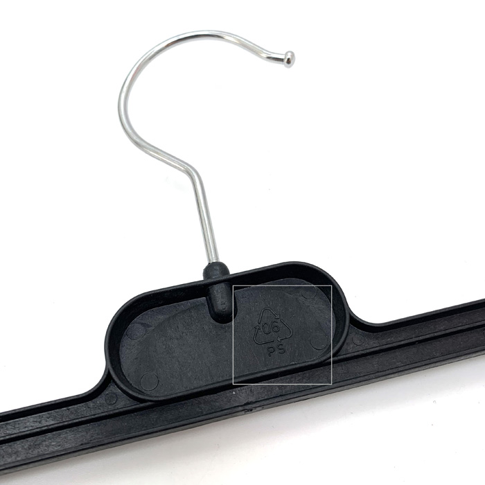 Velvet Hanger normally use plastic hanger as bottom ground basic. Because it need very smooth surface. So we have one way to add logo on the hanger as below. If order quantity big. can add logo on hook also, Mould cost needed.