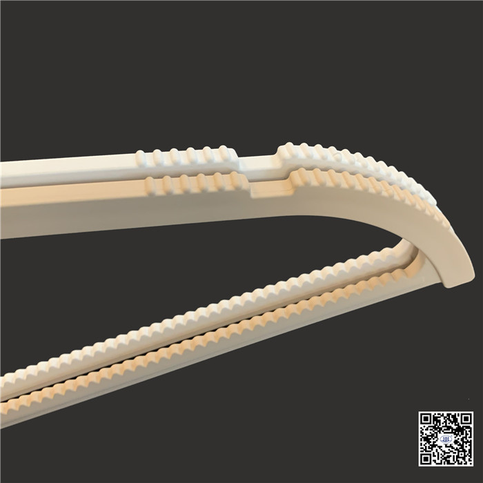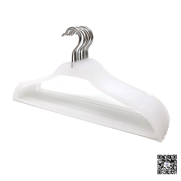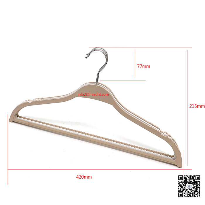 Velvet Hanger normally use plastic hanger as bottom ground basic. Because it need very smooth surface. So we have one way to add logo on the hanger as below. If order quantity big. can add logo on hook also, Mould cost needed.