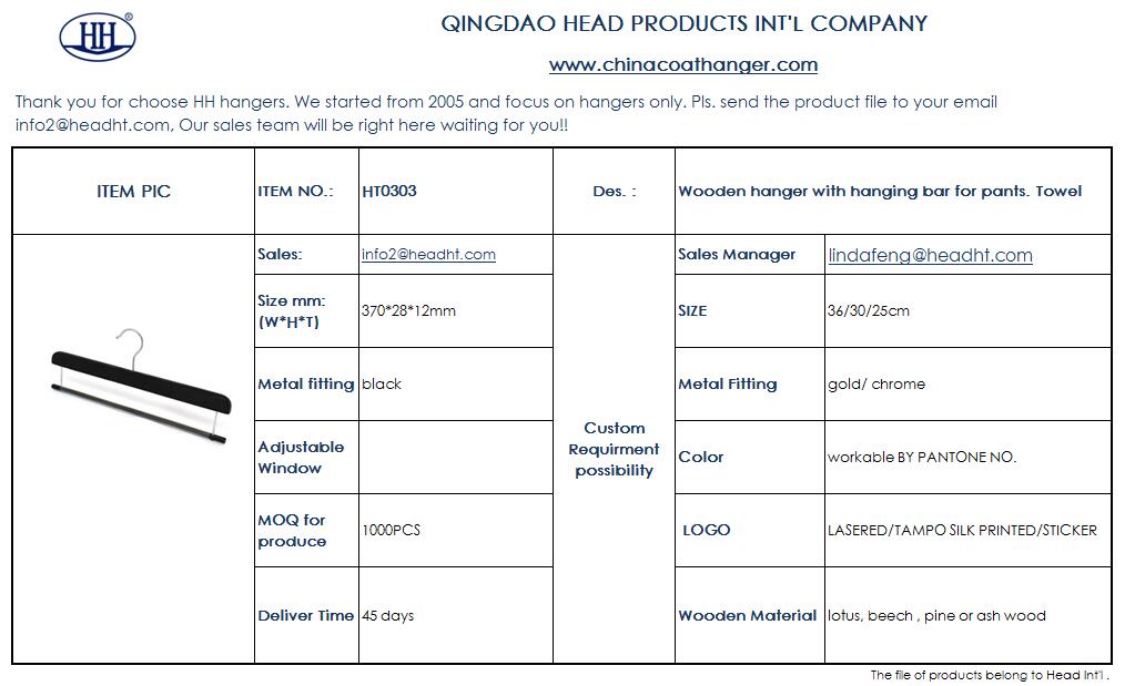 • ITEM NO.:  HT0303    WOODEN BOTTOM HANGER - TROUSERS SKIRT HANGER