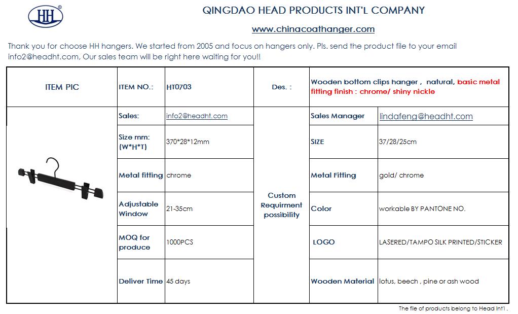 We learn knowledge of hangers meterial , fuction, production after we started the busines. Everyone here in Head Products Int'l works for helping our clients easily find the right personality clothes hangers , We are HH hangers custom service team.