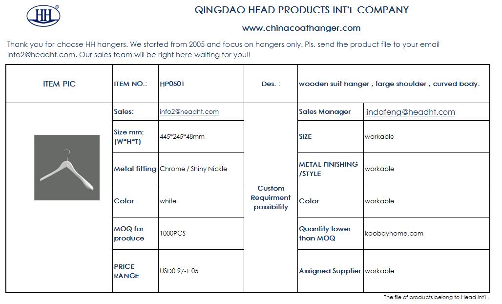 We learn knowledge of hangers meterial , fuction, production after we started the busines. Everyone here in Head Products Int'l works for helping our clients easily find the right personality clothes hangers , We are HH hangers custom service team.