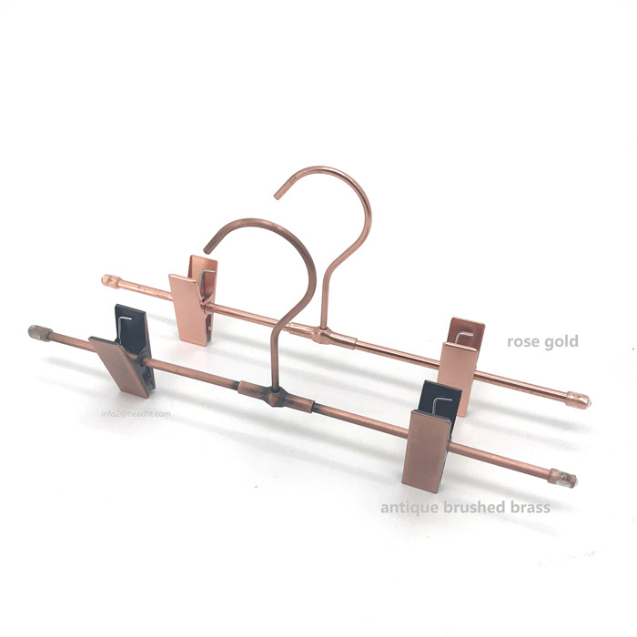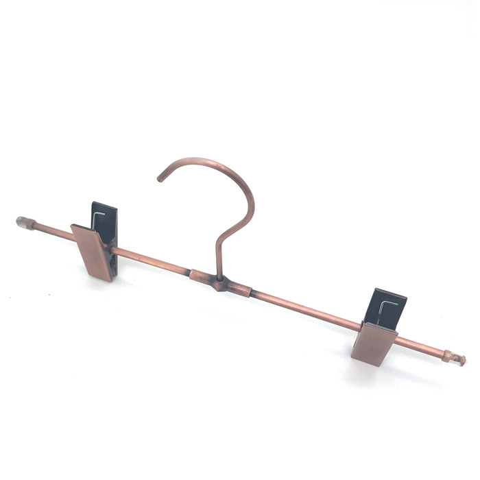 Adjustable Clips Bottom Clothes Hanger for Pants or Skirts Display. with flat clips 50*17mm middle size. Swivel Hook.