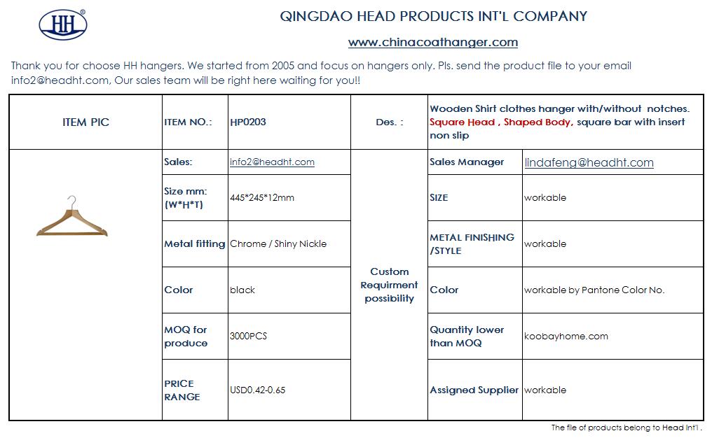 HP0203 WOODEN SHAPED BODY TOP HANGER , NON SLIDE SQUARE BAR